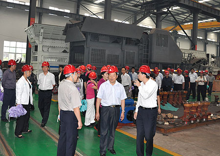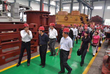 喬經(jīng)理首先代表集團公司對中青班各位領導的光臨表示了熱烈的歡迎,對公司發(fā)展、工業(yè)園運營、產(chǎn)品生產(chǎn)等進行了具體詳細的講解。在稍后的工業(yè)園巡查過程中,向考察組一行系統(tǒng)介紹了公司在礦石破碎和人工制砂成套工藝的技術(shù)優(yōu)勢,以及公司在超細粉加工、電廠脫硫石灰石磨粉、超壓梯形磨粉機等節(jié)能環(huán)保設備研發(fā)領域的節(jié)能降耗、市場開發(fā)等情況,現(xiàn)場詳細解答了考察組提出的各種問題。