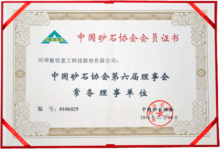 公司一直是中國砂石協(xié)會理事單位,眾多產(chǎn)品經(jīng)廣泛的市場應(yīng)用,贏得了國內(nèi)外客戶的普遍贊譽,被中國砂石協(xié)會確定為推薦設(shè)備。本屆再次由新?lián)Q屆的中國砂石協(xié)會推薦為常務(wù)理事單位,表現(xiàn)了中國砂石協(xié)會對黎明重工科技產(chǎn)品質(zhì)量的充分認可。