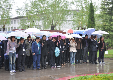 天空陰霾,細(xì)雨紛紛。4月21日上午10時,黎明重工科技全體員工冒雨面向國旗肅立,默哀3分鐘,沉痛悼念4月14日青海省玉樹藏族自治州大地震遇難同胞。默哀結(jié)束后,公司領(lǐng)導(dǎo)走向捐款箱捐款, 全體職工緊隨其后,紛紛向?yàn)?zāi)區(qū)人民獻(xiàn)上了自己誠摯的愛心。